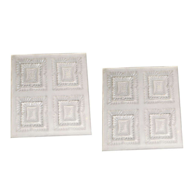 Pair of Architectural Panels from the Elevator Doors – Oviatt Building Los Angeles, 1927. In clear and frosted glass, 16 in. square